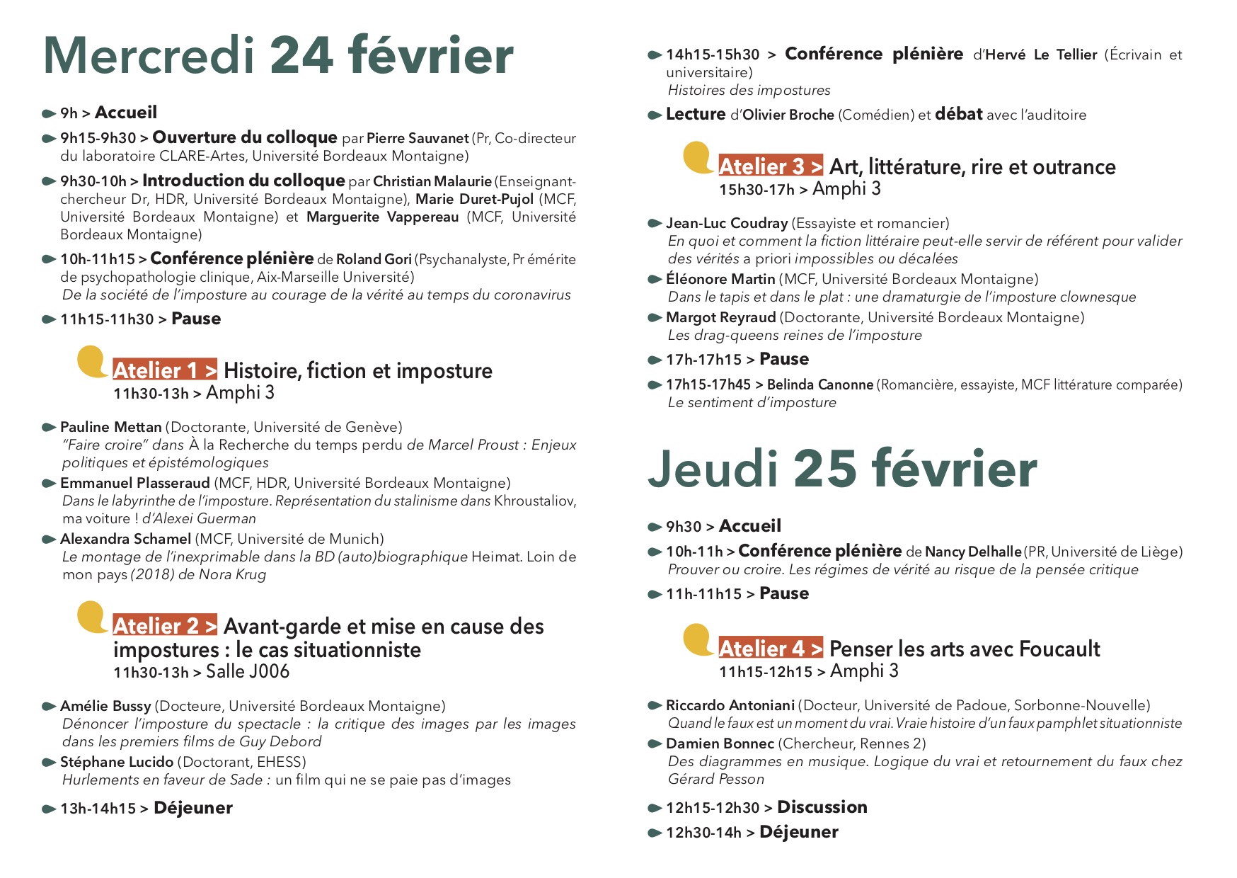 Voici le programme du colloque qui aura lieu les 24 et 25 février prochain sur le campus de l’université Bordeaux-Montaigne.